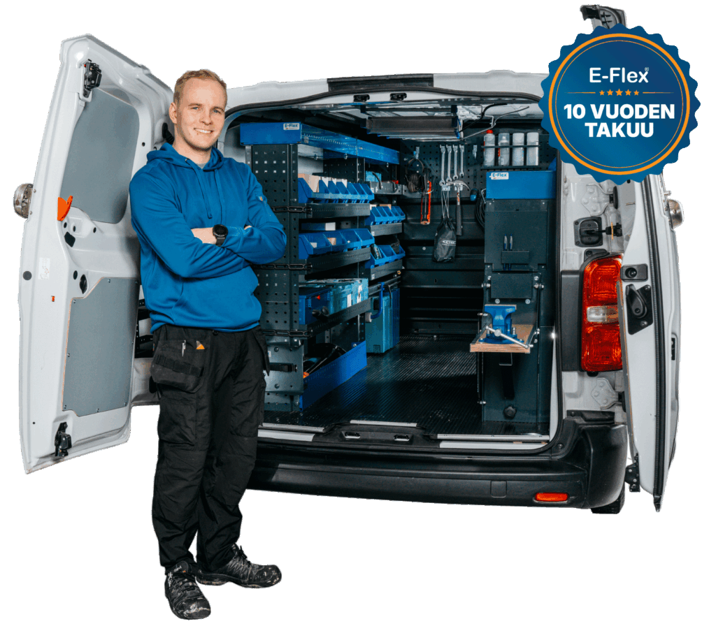 Pakettiauton hyllyt todellisille ammattilaisille. Valikoimastamme löydät pakettiauton hyllyt, hyllyjärjestelmät ja kalusteet erilaisilla kokoonpanoilla kaikenkokoisiin pakettiautoihin. Olemme keskittyneet pakettiauton hyllyratkaisuihin jo vuodesta 2010, ja vuosien varrella E-Flex-tuotteitamme on kehitetty asiakkaiden kokemusten pohjalta. Tarjoamme ylpeästi huippuluokan vaihtoehdon pakettiauton varusteluun. Tervetuloa tutustumaan valikoimaamme ja showroomiimme myös paikan päälle osoitteessa Sulankaari 8, Tuusula!