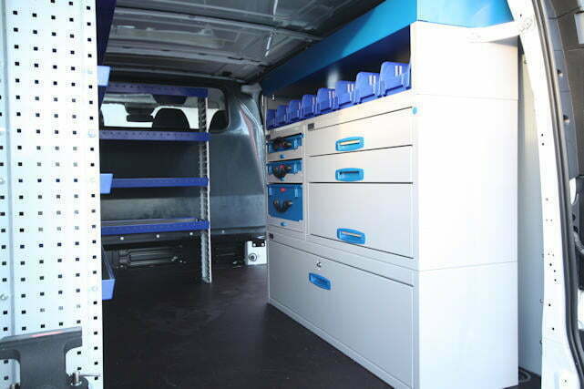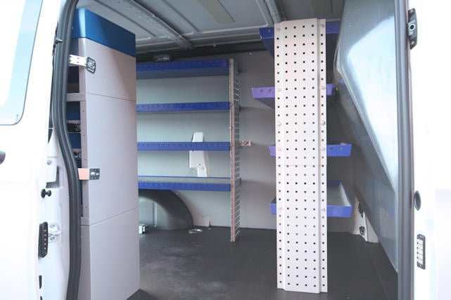 Lukkosepän hyllyt Ford Custom asennusautoon, turvallisuusala hyllyt, asiakaskokemus.