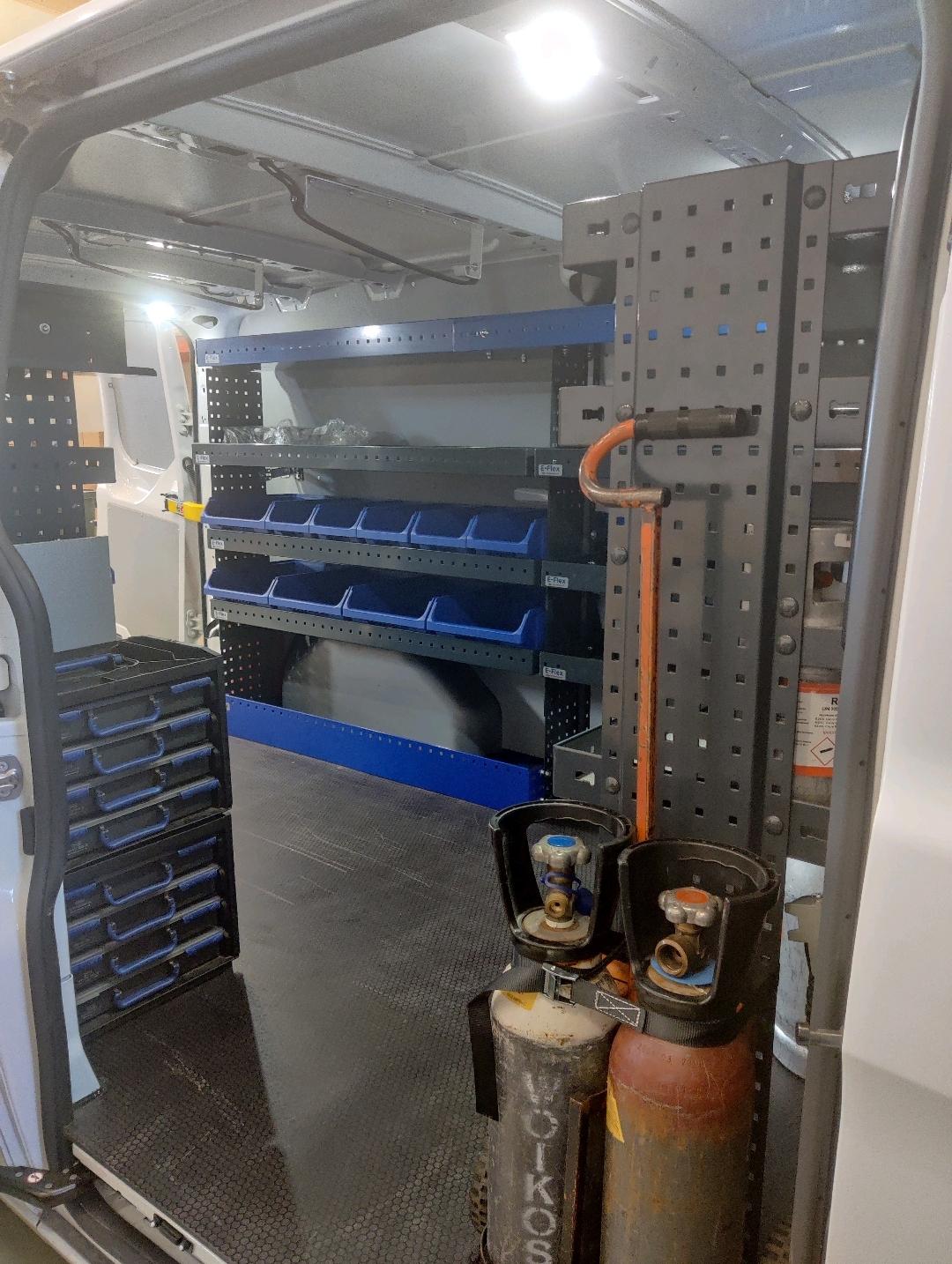 Ford Transit Custom hyllyt kylmäasentajalle, asiakaskokemus. Asennus Juvanmalmilla. Jääkonehuolto Oy, Erik Tallberg, Ford Transit Custom L2H1, 12.8.2022