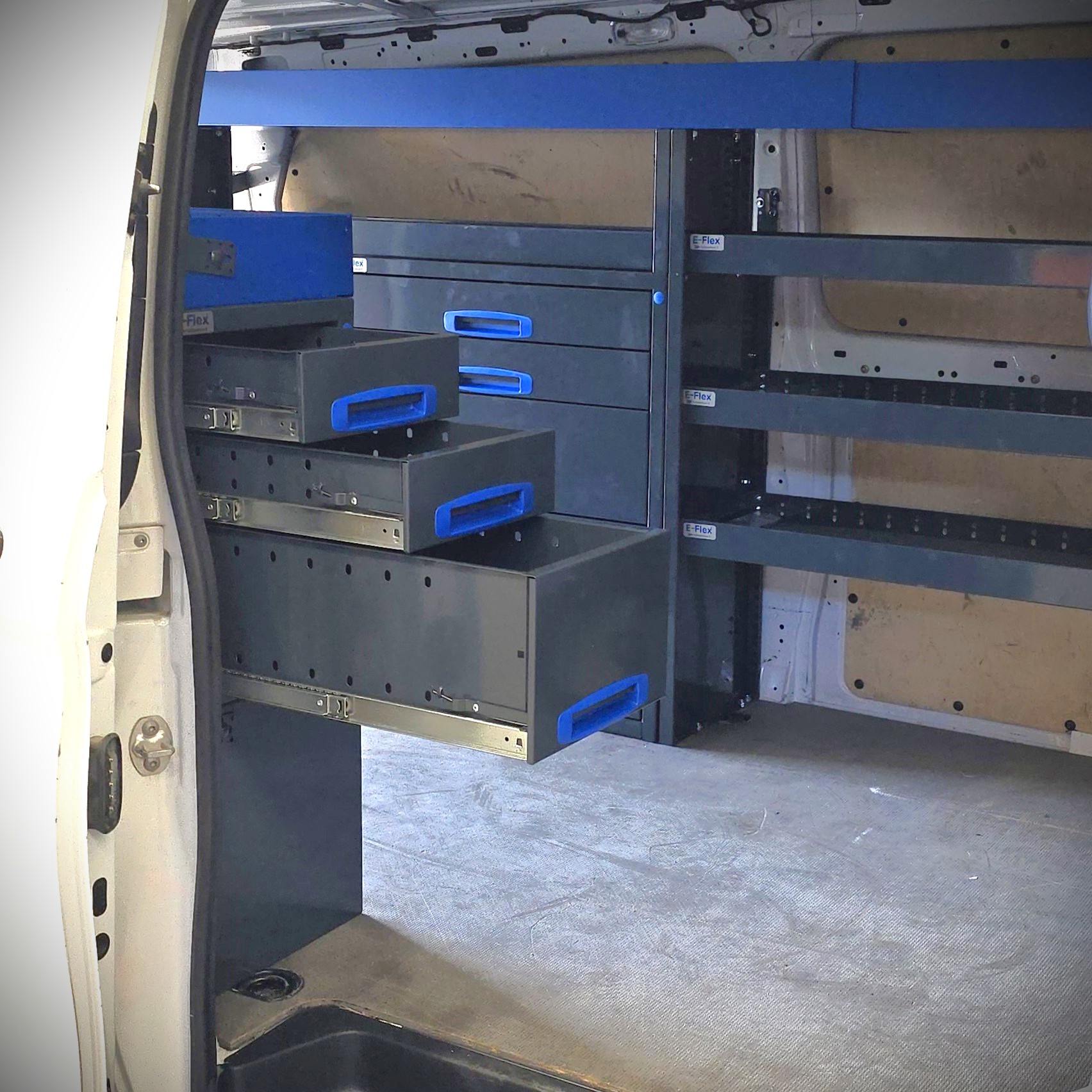 – 230 cm hyllykkö / laatikosto vetolaatikoilla