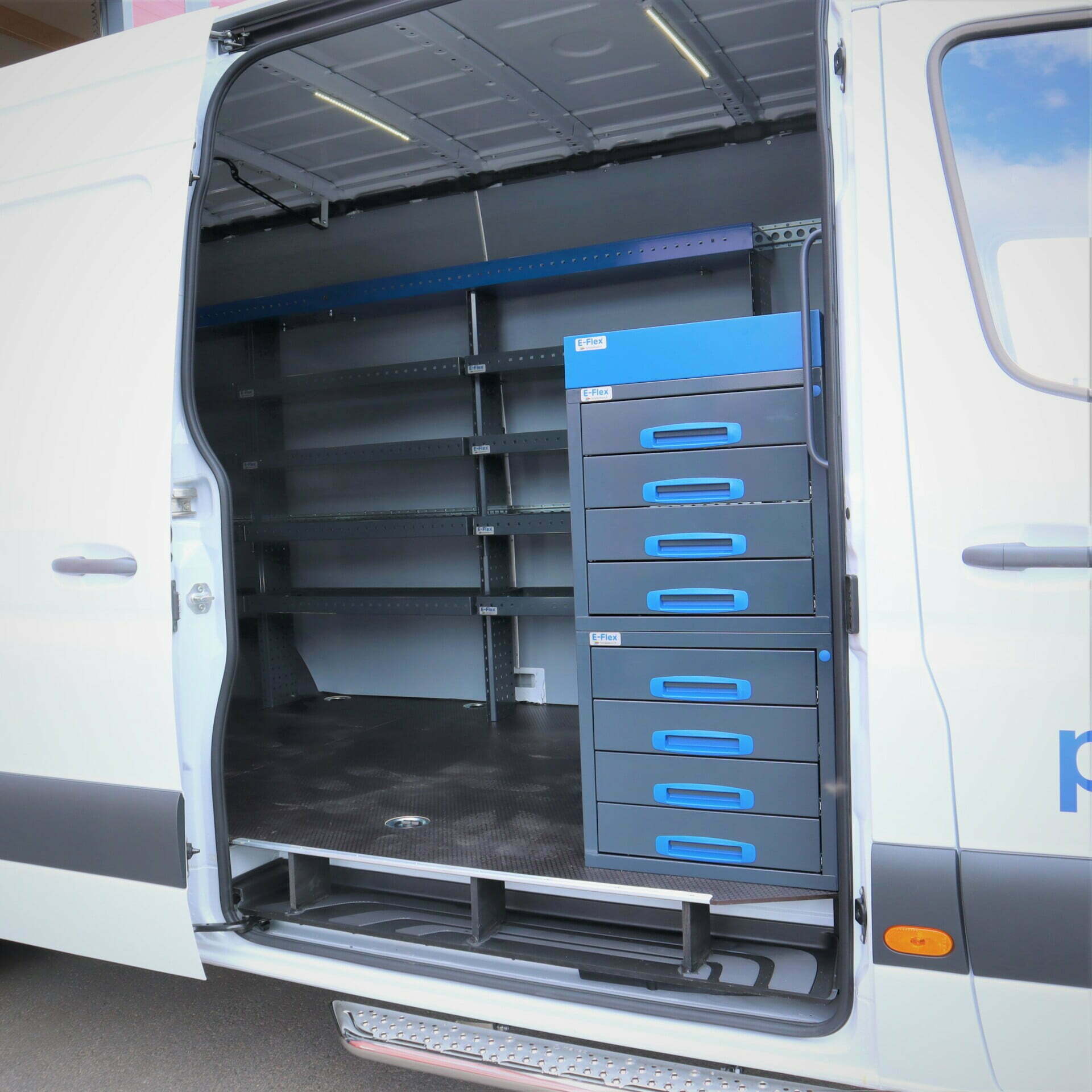 Mercedes-Benz Sprinter A3, pakettiauton hyllyt aitojen ja porttien asentajien käyttöön, asiakaskokemus. Asennus tehtiin vanhalla toimipisteellämme Espoossa kesäkuussa.