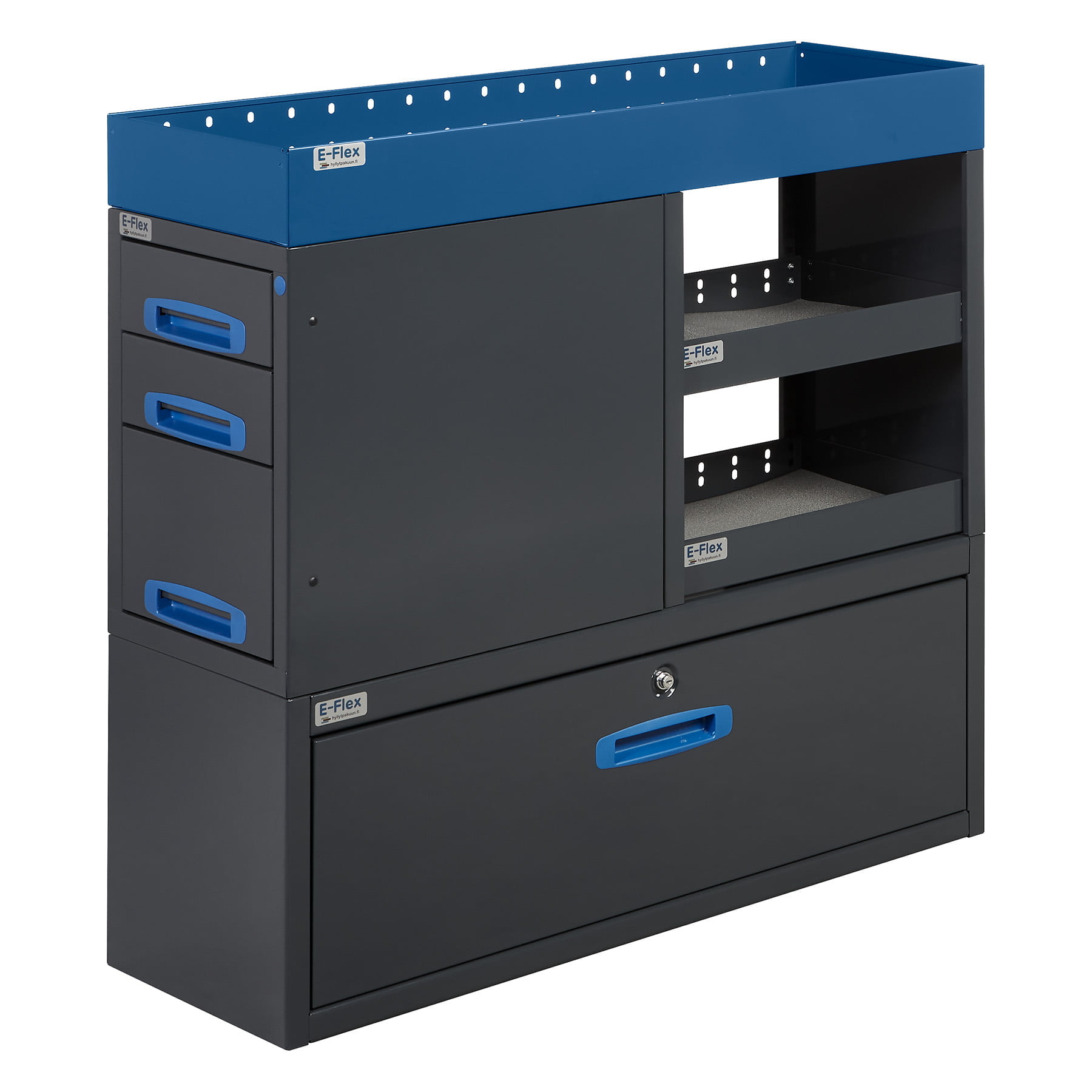Jämerät E-Flex pakettiauton hyllyköt / laatikostot ovat suosittuja ja monipuolisia pakettiauton kalusteita. Kalusteessa on yhdistetty vetolaatikoita, avohyllyjä ja muita säilytystiloja. Hyllykkö- / laatikostojen pääväri on pulverimaalattu antrasiitti ja toisena värinä on tyylikäs pulverimaalattu sininen. Moduuleista koosttuvat tuotekokonaisuudet on helppo ja selkeä kasata sekä asentaa. Tuotekokonaisuudet ovat moduulirakenteensa vuoksi myös hyvin muunneltavissa. Vetolaatikostojen kiskot ovat kuulalaakeroituja (kantavuus 40 kg) ja tehty nimenomaan pakettiautoja varten eli laatikot lukittuvat paikalleen sekä auki että kiinni -asennoissa eivätkä aukeile itsekseen ajon aikana. Annamme tuotteille 10 vuoden takuun, joka takaa että nämä todella kestävät vaativammassakin ammattikäytössä. Täydennä kalusteesi tarvittavilla lisävarusteilla.