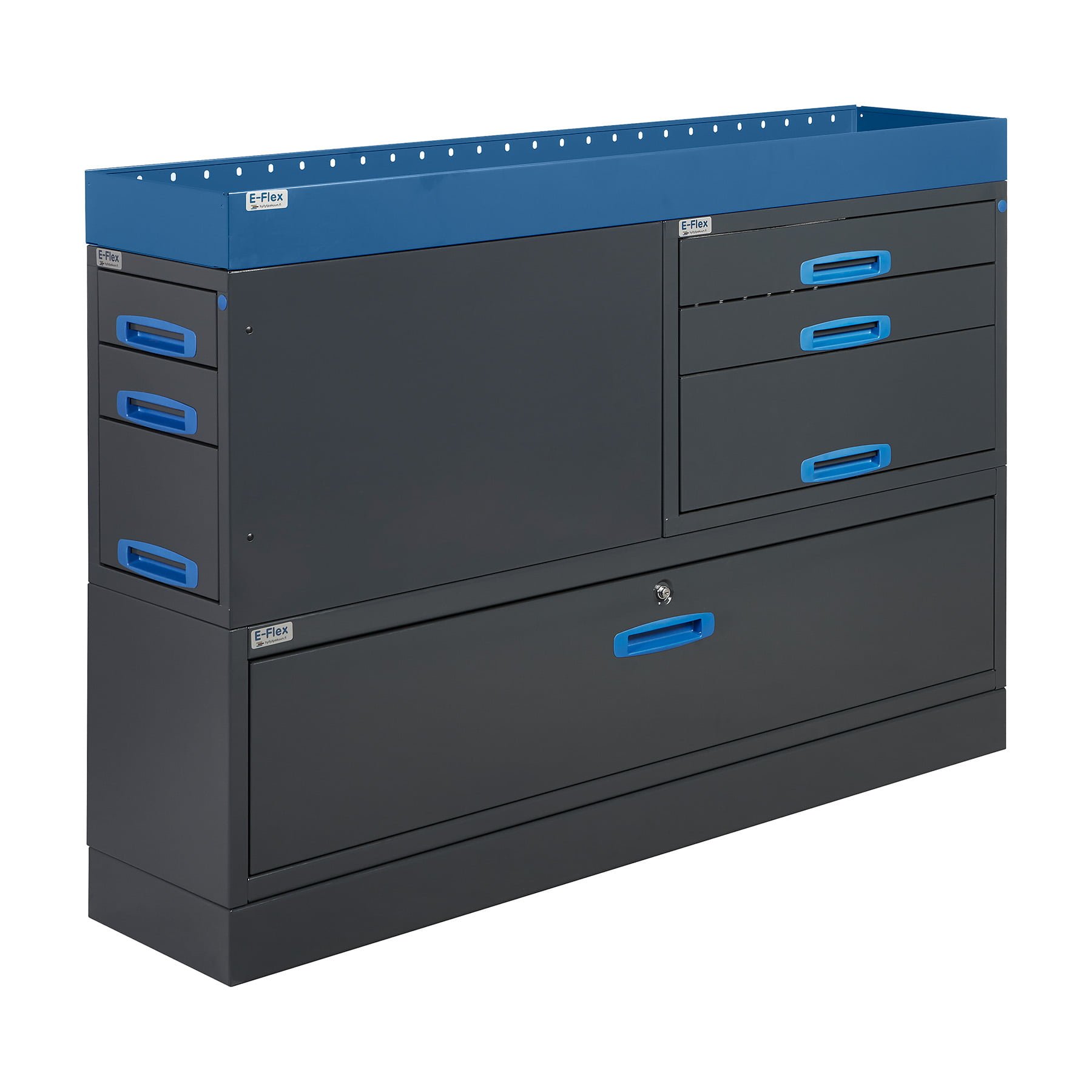 Jämerät E-Flex pakettiauton hyllyköt / laatikostot ovat suosittuja ja monipuolisia pakettiauton kalusteita. Kalusteessa on yhdistetty vetolaatikoita, avohyllyjä ja muita säilytystiloja. Hyllykkö- / laatikostojen pääväri on pulverimaalattu antrasiitti ja toisena värinä on tyylikäs pulverimaalattu sininen. Moduuleista koosttuvat tuotekokonaisuudet on helppo ja selkeä kasata sekä asentaa. Tuotekokonaisuudet ovat moduulirakenteensa vuoksi myös hyvin muunneltavissa. Vetolaatikostojen kiskot ovat kuulalaakeroituja (kantavuus 40 kg) ja tehty nimenomaan pakettiautoja varten eli laatikot lukittuvat paikalleen sekä auki että kiinni -asennoissa eivätkä aukeile itsekseen ajon aikana. Annamme tuotteille 10 vuoden takuun, joka takaa että nämä todella kestävät vaativammassakin ammattikäytössä. Täydennä kalusteesi tarvittavilla lisävarusteilla.