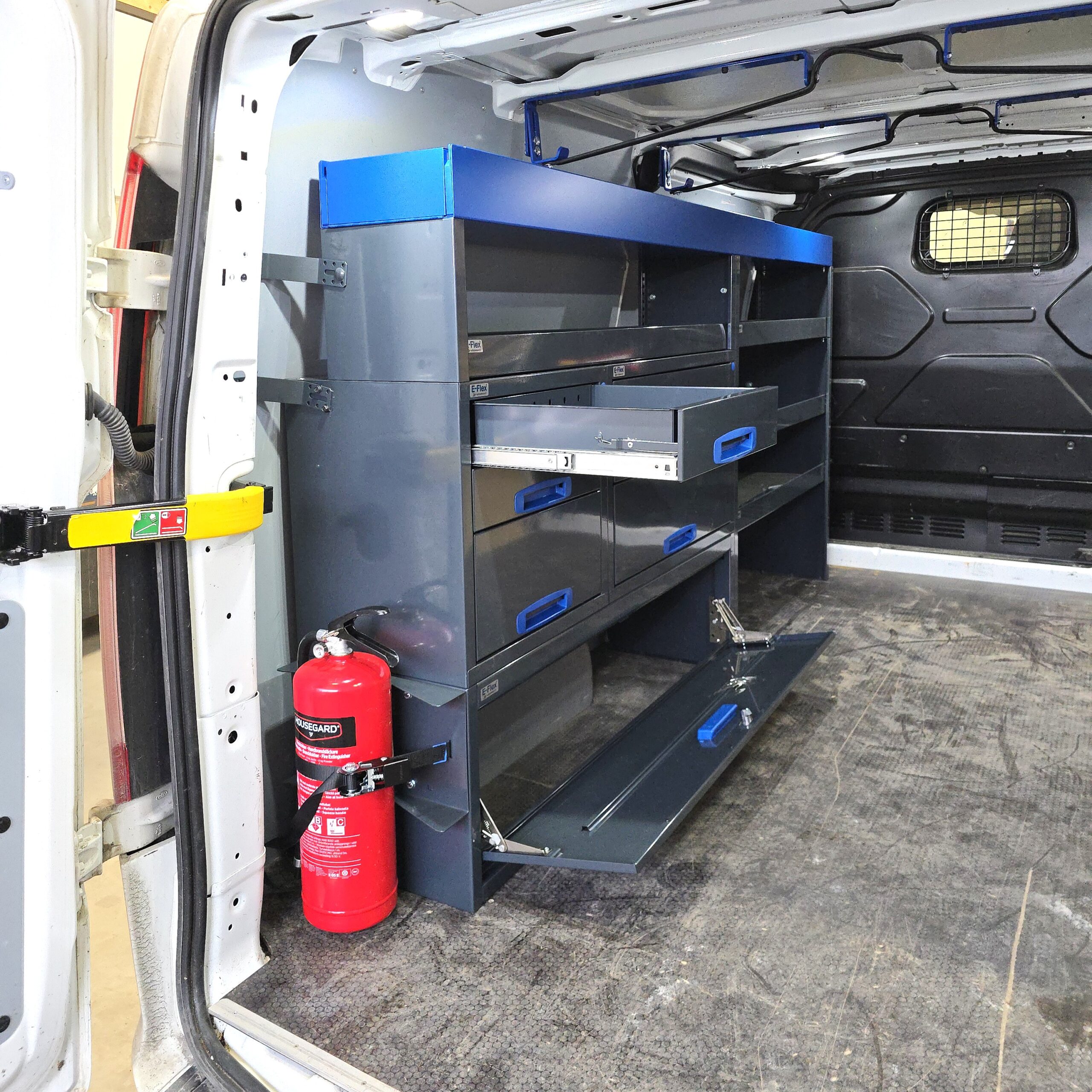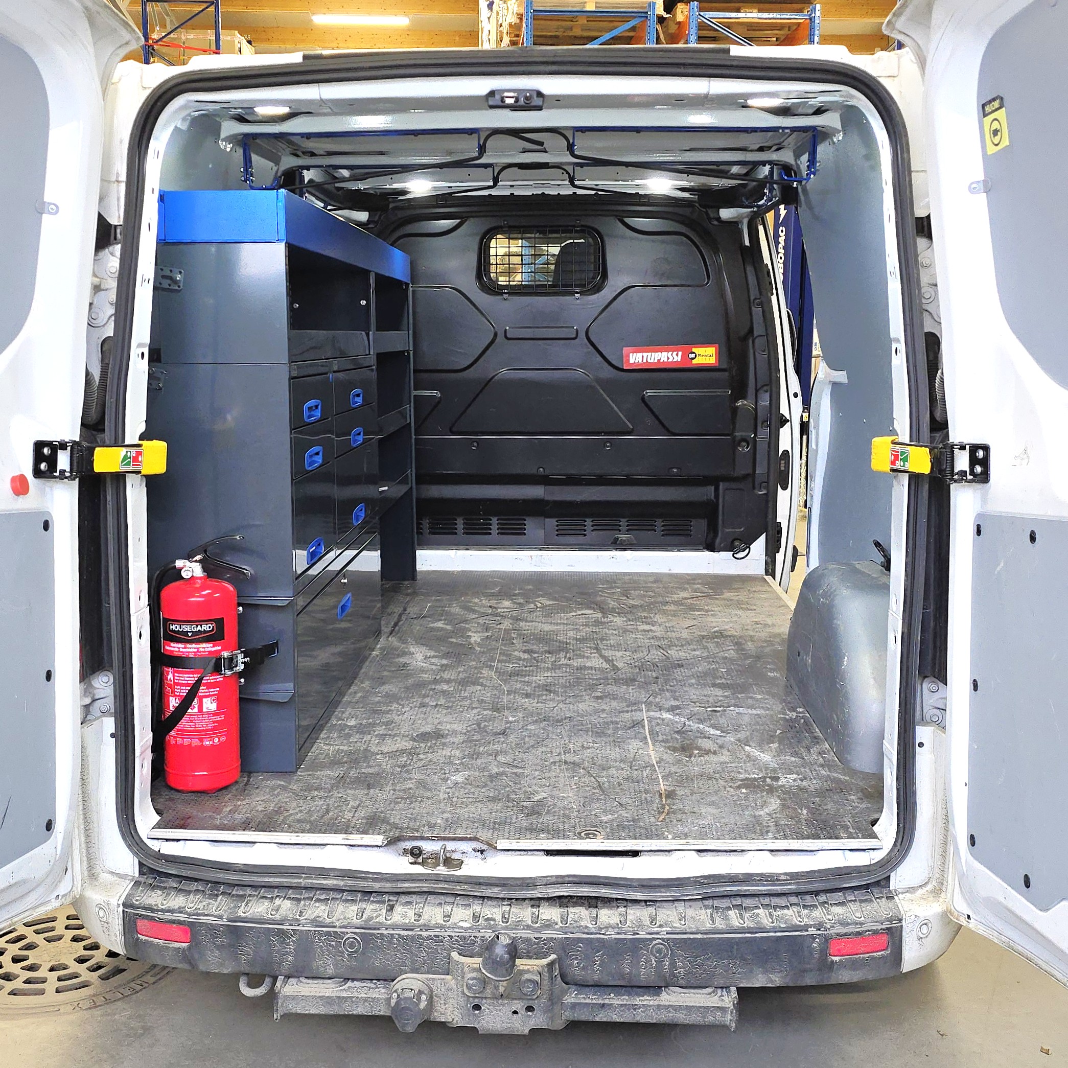 Tämä hyllyjärjestelmä on suunniteltu L2H1-kokoluokan pakettiautoihin ja sopii erityisesti malleihin kuten Ford Transit Custom L2 pitkä, M-B Vito pitkä, Nissan Primastar pitkä, Renault Trafic pitkä, VW Transporter pitkä. Järjestelmä yhdistää vetolaatikot, avohyllyt ja säilytystilat, tarjoten monipuolisen ja muunneltavan säilytysratkaisun ammattilaiskäyttöön. Pulverimaalattu antrasiitti ja sininen väri tekevät siitä tyylikkään ja kestävän vaihtoehdon. Kuulalaakeroidut vetolaatikot lukittuvat turvallisesti eivätkä aukea ajon aikana. Tuotteelle myönnetään 10 vuoden takuu, mikä takaa sen kestävyyden vaativissakin olosuhteissa.Täydennä kalusteesi tarvittavilla lisävarusteilla.