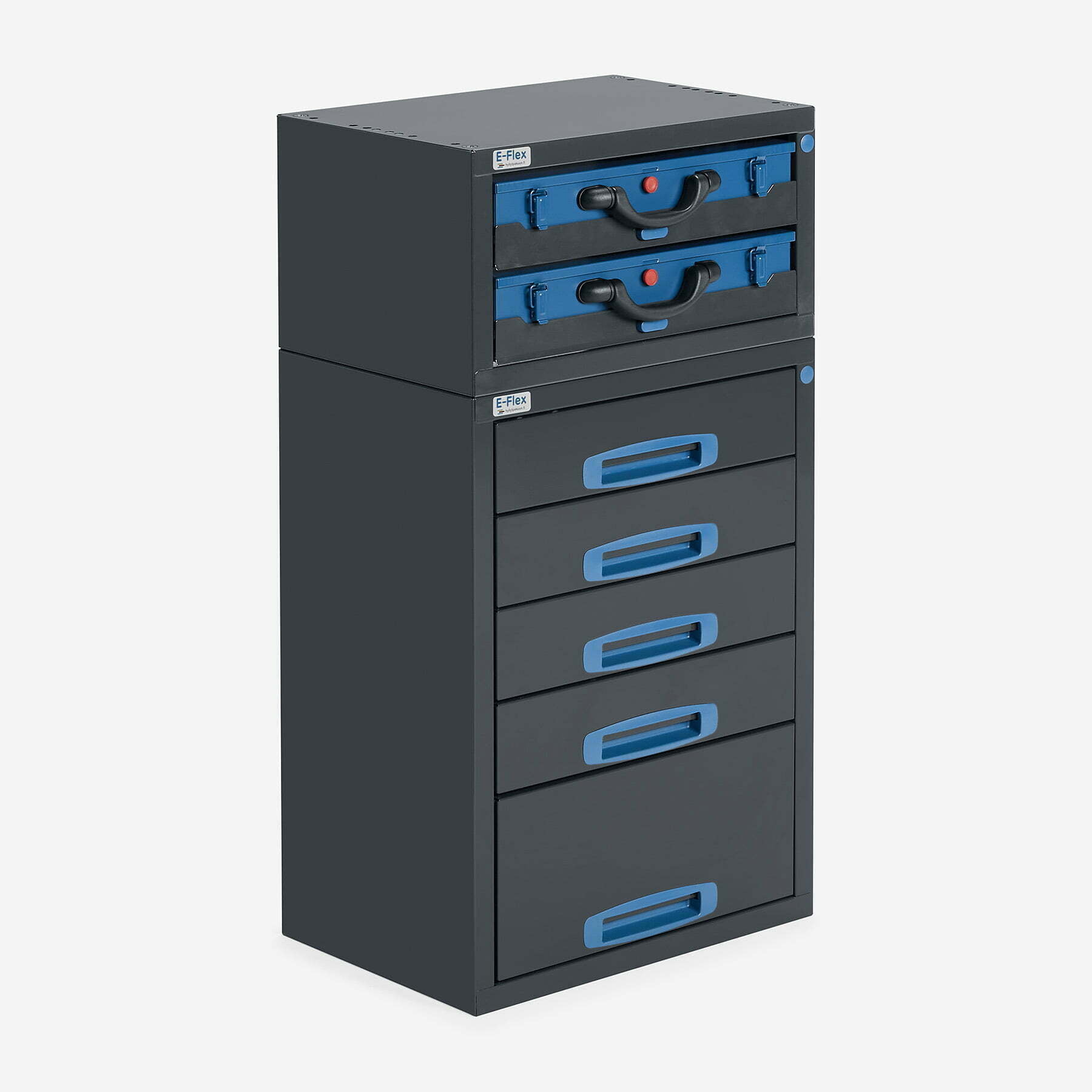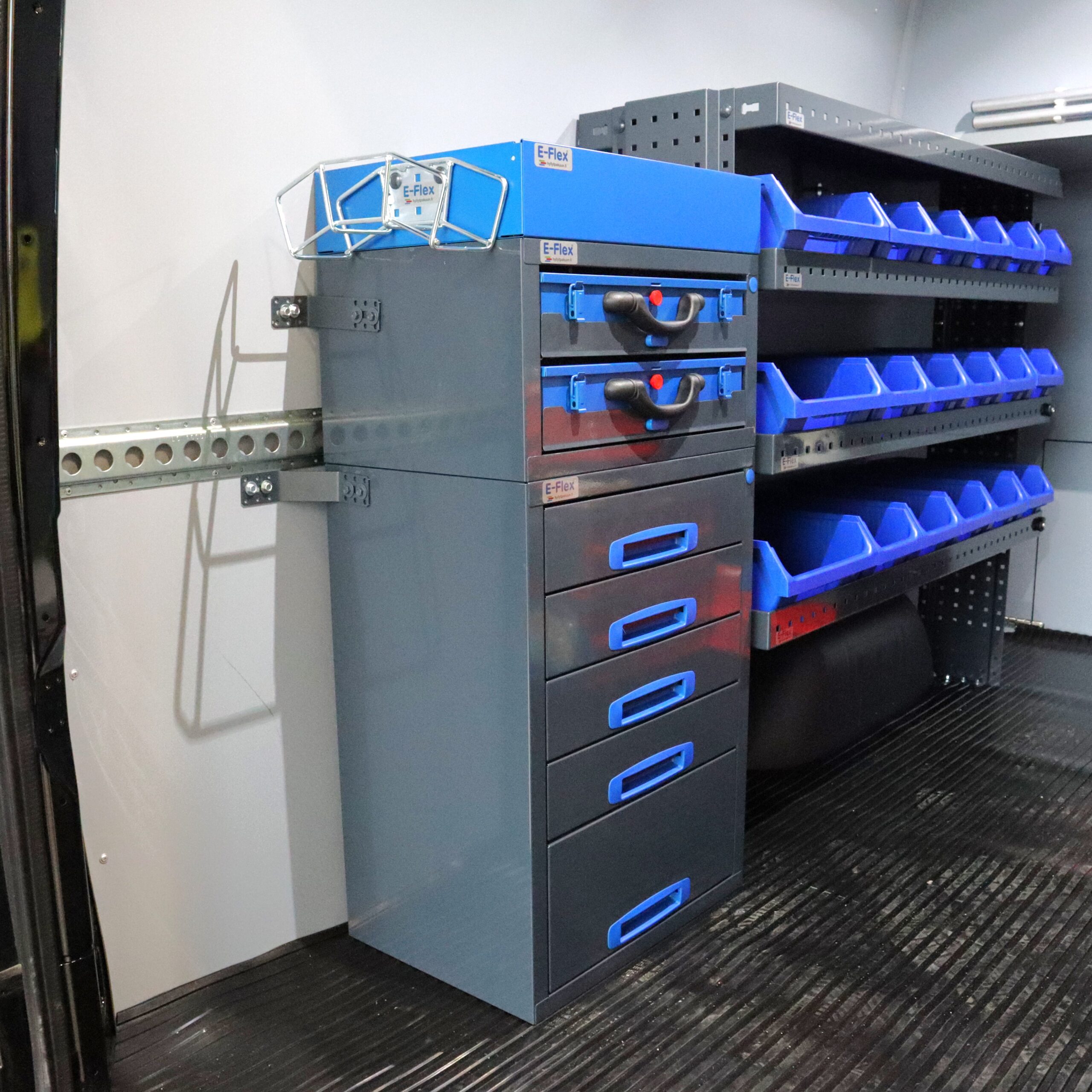 Jämerät E-Flex pakettiauton vetolaatikostot ovat suosittuja ja monipuolisia pakettiauton säilytystiloja. E-Flex vetolaatikostojen pääväri on pulverimaalattu antrasiitti ja toisena värinä on tyylikäs pulverimaalattu sininen. Moduuleista koosttuvat tuotekokonaisuudet on helppo ja selkeä kasata sekä asentaa. Tuotekokonaisuudet ovat moduulirakenteensa vuoksi myös hyvin muunneltavissa. Annamme tuotteille 10 vuoden takuun, joka takaa että nämä todella kestävät vaativammassakin ammattikäytössä. Täydennä kalusteesi tarvittavilla lisävarusteilla.