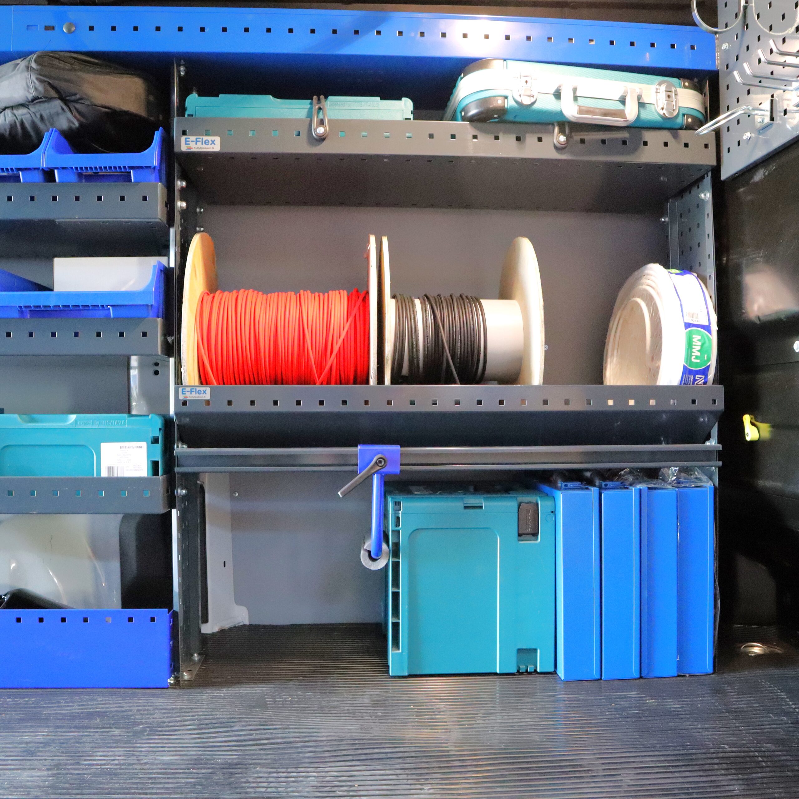 • Suunniteltu sähkökaapelikelojen säilytykseen pakettiauton tavaratilassa. Sama leveys kuin 95 cm hyllylevyssä.