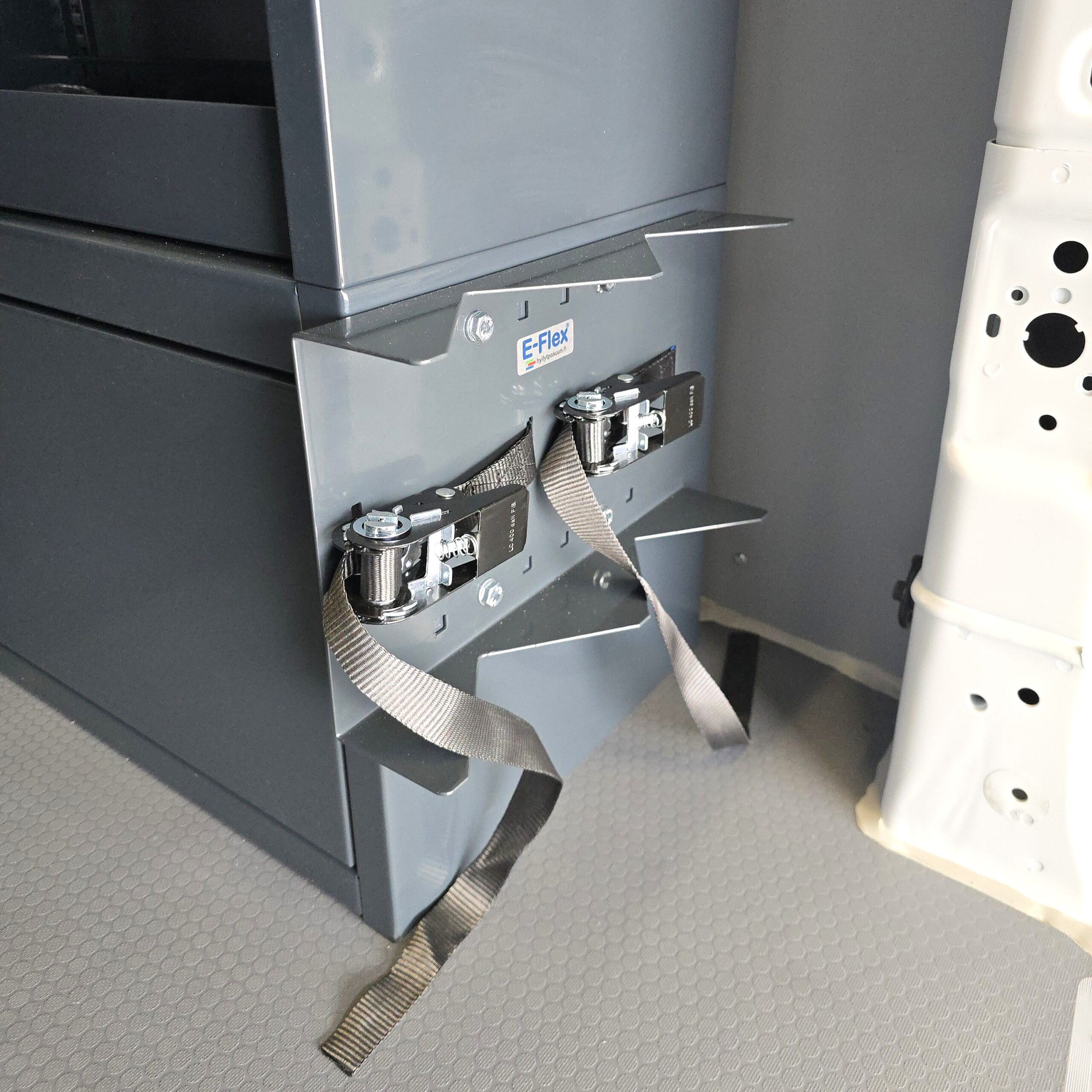E-Flex Kaasupulloteline pakettiautoon 2 pullolle on suunniteltu kaasupullojen tai muiden vastaavien säiliöiden, kuten sammuttimien, turvalliseen ja hallittuun kiinnitykseen pakettiautossa. Telineen korkeus on 20 cm ja leveys 36 cm, ja vahva rakenne pitää pullot tukevasti paikallaan myös vaativissa ajo-olosuhteissa. Teline soveltuu erityisesti kahdelle pienelle kaasupullolle tai yhdelle sammuttimelle.