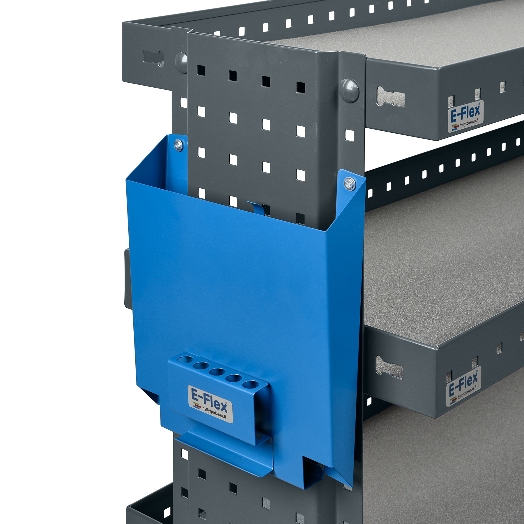 E-Flex Paperiteline on suunniteltu helpottamaan pakettiautoilijoiden arkea. Sen kompakti koko tekee siitä ihanteellisen valinnan A4-dokumenttien ja kynien säilytykseen. Leveys on 23 cm, korkeus 27 cm ja syvyys 6 cm, mikä mahdollistaa sen sijoittamisen hyllyn päätyyn tai pakettiauton seinälle.