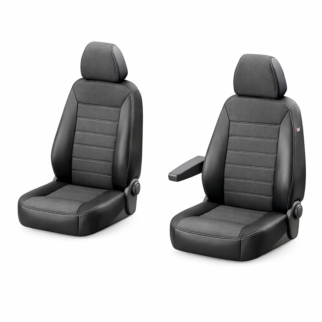 Ensiluokkaiset istuinsuojat Peugeot Partnerin etupenkkeihin 1+1 kokoonpanolla. Kestävä puolikeinonahka kestää työajon, pitkät matkat ja aktiivisen arjen. Materiaali on helppo puhdistaa ja suojaa alkuperäisiä verhoiluja kulumiselta, lialta ja nesteiltä.