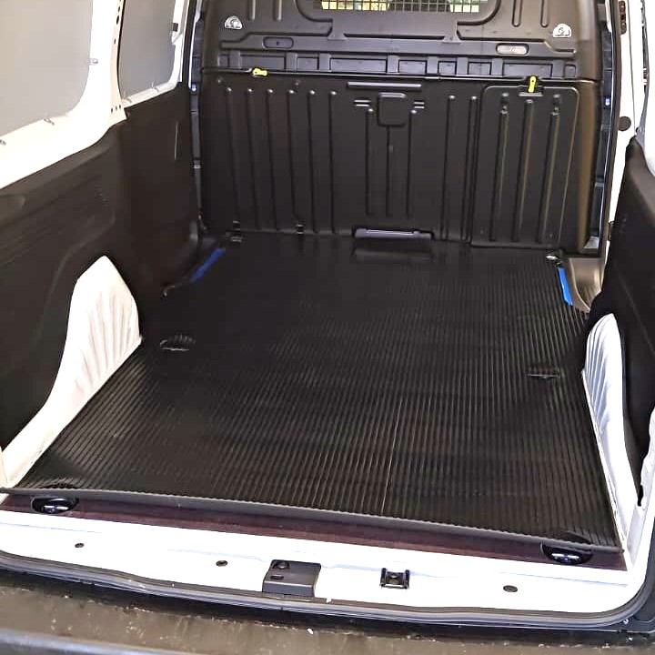 Muotoon leikattu urakumimatto pakettiautoon Toyota Proace City L2, jossa yksi liukuovi oikealla ja takaa pariovet. Jos autossasi on kaksi liukuovea, niin vasemman liukuoven kynnyskolon voi leikata itse mattopuukolla.
